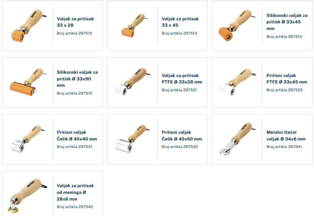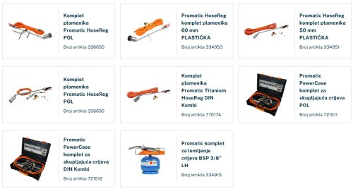 TERMOSKUPLJAJUĆA TEHNOLOGIJA - PLAMENICI - LEMILICE Komplet za lemljenje Nezaobilazan proizvod za krovopokrivače i limare Price: 0,00 € Komplet plamenika Najkorišteniji proizvod u građevinarstvu ,elektroenergetici i komunalnim radovima Price: 0,00 € Patrone,crijeva,regulatori tlaka,spojevi crijeva Price: 0,00 € Pritisni valjak Price: 0,00 € Set za termoskupljanje cijevi kabela tehnologija termoskupljanja cijevi kabela Price: 0,00 € Valjci za pritisak Price: 0,00 €